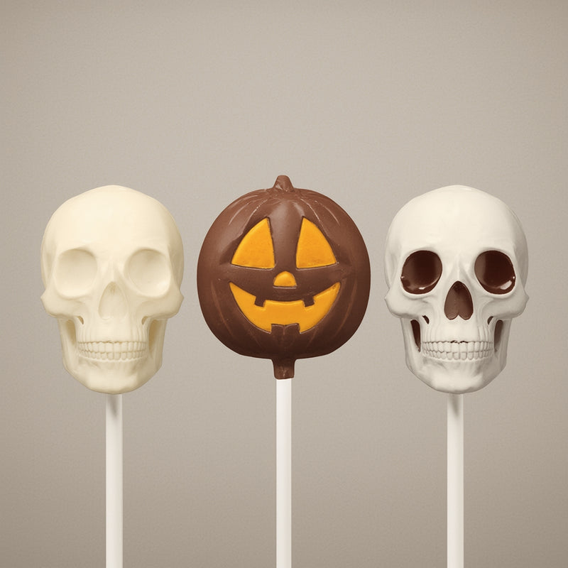 Halloween Chocolate Lollies 30g – Skull & Pumpkin Shaped Chocolate Treats – Individually Wrapped Halloween Sweets. Get into the spooky spirit with these Halloween Chocolate Lollies 30g! Shaped like Skulls and Pumpkins, these fun chocolate treats are perfect for trick-or-treating, Halloween parties, or festive gift bags. Each lolly is individually wrapped to keep it fresh, making them convenient and safe to share with friends and family. Delight kids and adults alike with these spooky yet delicious chocolate treats.